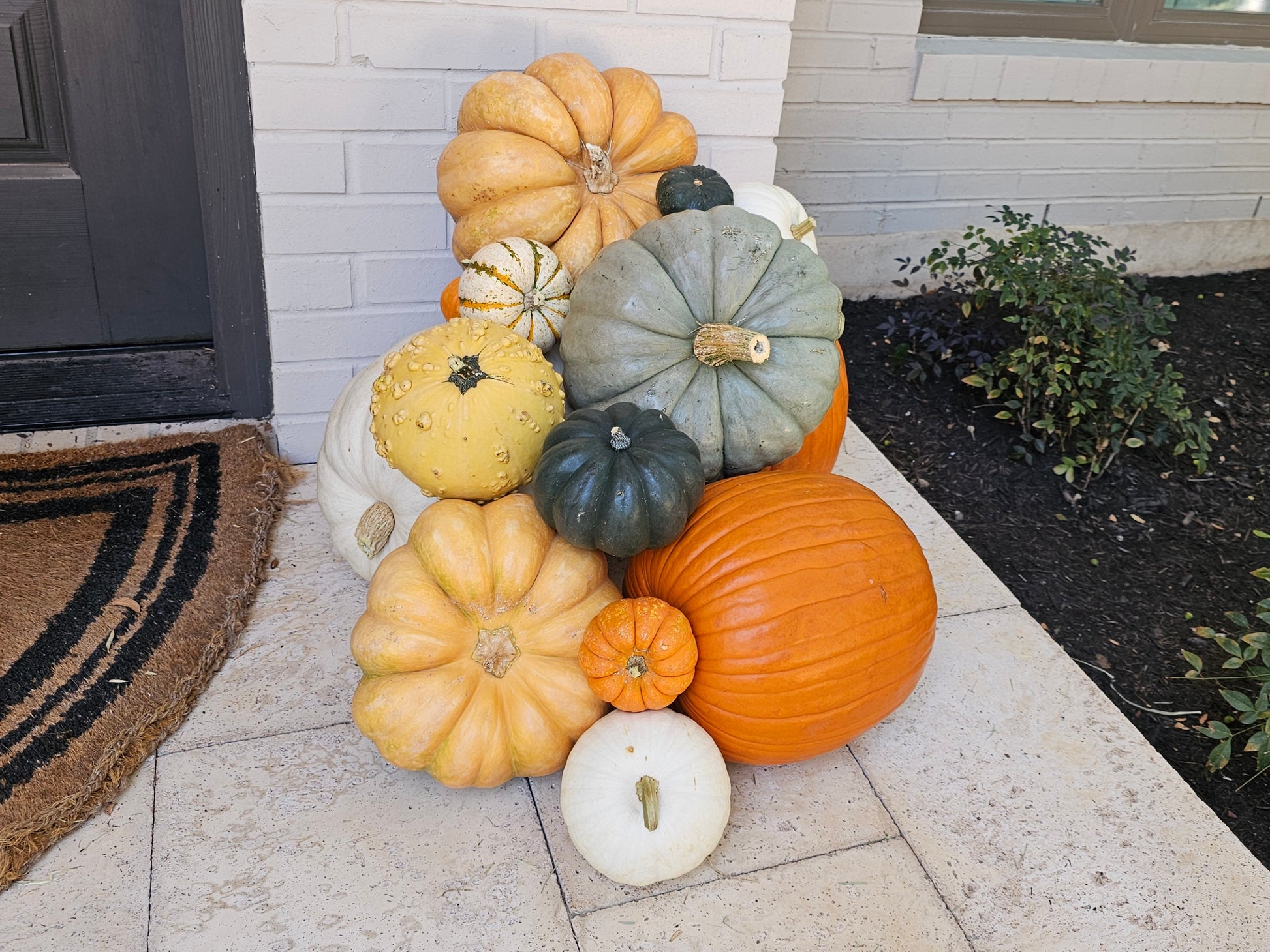Our Mini Package includes 3 specialty pumpkins, 1 large jack o lantern, 1 medium jack o lantern, 1 white pumpkin, and an assortment of pie and mini pumpkins.